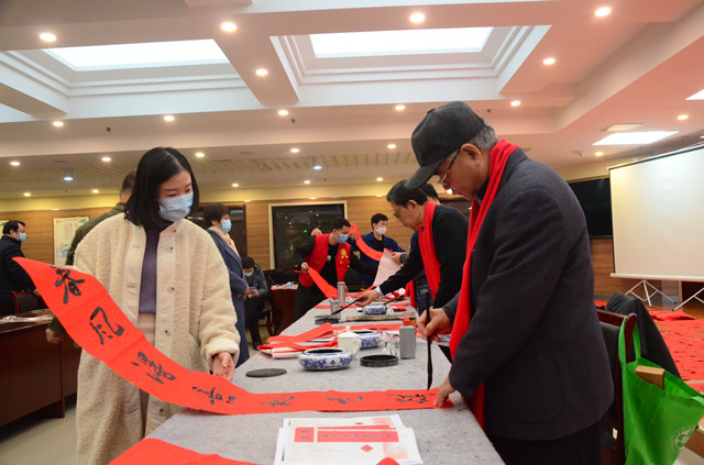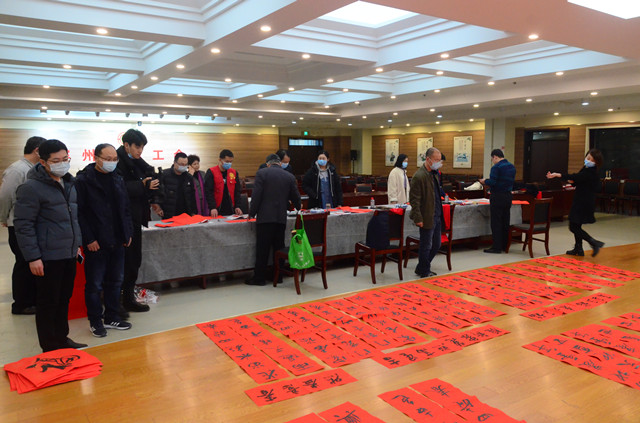 活動中,市總工會黨組成員、副主席戴新生為到場的企業職工和勞模代表,分發了現場書寫出的墨寶以及印制的春聯,并向全市廣大企業職工送上新春祝福。