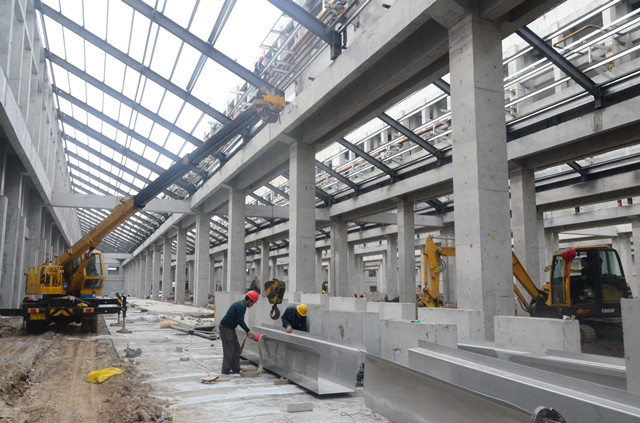 我們在王平帶領下,在新廠房外圍參觀了一遍。他邊走邊說,面料車間整體完成進度85%,車間主體工程已經建設完成,設備基礎在緊鑼密鼓的建設中,預計6月底整體達到投產狀態,8月底完成全部搬遷;家紡車間整體完成度80%,車間主體工程已經建設完成,鋼結構工程在加緊安裝中,預計6月底整體達到投產狀態,8月底完成全部搬遷;服裝車間整體已經全部完成,達到了整體搬遷條件;污水處理整體完成度95%,車間主體工程已經建設完成,脫水機房工程尚在緊張建設中,預計4月底可投產運行;食堂主體完成度95%,一二層主體工程已經建設完成,預計在3月底能達到投產狀態,三層尚在緊張裝修中,預計4月底能達到投產狀態;助劑加工車間、紙管廠完成度65%,主體工程已經基本建設完成,預計6月份達到投產狀態。