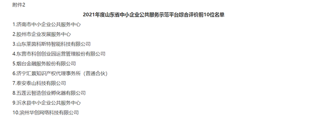 華創(chuàng)進(jìn)入山東省中小企業(yè)服務(wù)平臺評價(jià)前10位