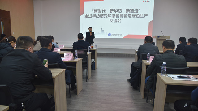 公司黨委副書記盛守祥代表公司,向與會領導及會員單位代表介紹了公司“退城進園”暨“智能綠色工廠建設項目”、升級印染全流程的智能制造等情況,并圍繞公司近年來大力推進企業轉型升級和新舊動能轉換工作,重點介紹了公司在智能智造、綠色生產方面的主要做法與經驗。公司副總工程師王國棟對公司近年來推動轉型升級及打造“智慧華紡”的整體發展成效,作了專題報告。