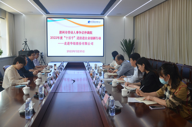 市勞動人事爭議仲裁院副院長翟瑞民、勞宏偉,調解仲裁二庭庭長孫靜,四級主任科員畢延軍等“送法服務隊”一行,在公司副總經理趙玉忠、孫玉濤等陪同下,參觀了檢測中心、綜合辦公區、面料展廳、花布展廳、家紡展廳、創意設計中心、工程技術研究院等區域。雙方圍繞新形勢下構建和諧勞動關系、推動企業整體發展等內容,進行了深入交流與座談。