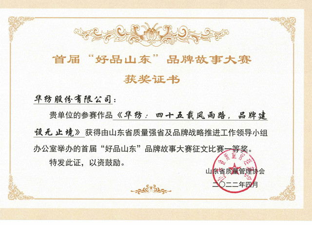華紡榮獲首屆“好品山東”品牌故事大賽一等獎(jiǎng)