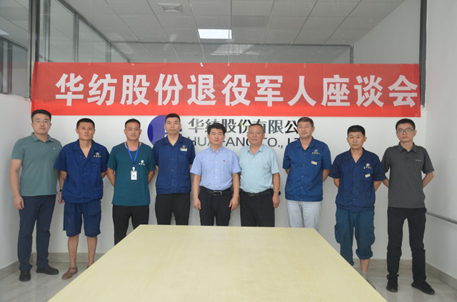參加當天座談會的公司在崗退役軍人代表:綜合車間主任劉新利、倉儲管理部染化庫搬運隊長王金慶、花布車間計劃主管尹東、家紡車間前處理輪班長孫鎮、面料車間維修工段長張連江、華紡置業公司物業主管李傳建、電氣車間自動化工程師王利彬等先后發言。他們簡要回顧了各自的軍營生活以及頑強、堅韌的人生積淀,介紹了退役進入公司后的成長經歷以及繼續在公司平臺上提升自我、創新突破的愿望與目標。