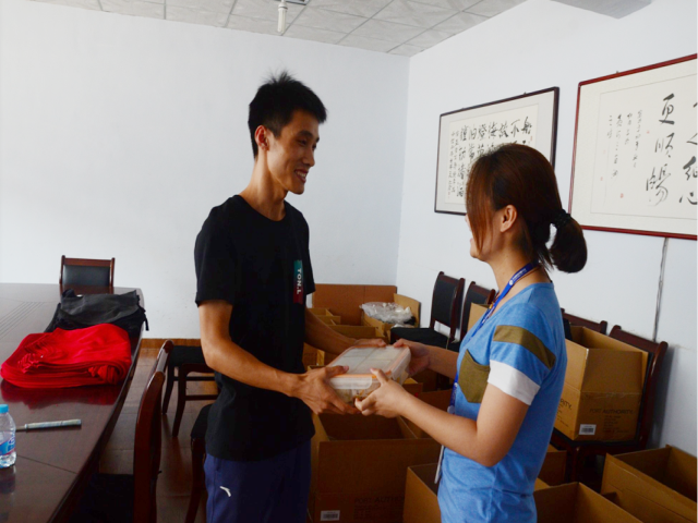 “吳青凱,生日快樂”,正在車間整理貨物的服裝公司業務員吳青凱聽到有人叫自己,一回身,只見營銷體系團支部書記姜琳紅把一份工作餐遞到手里。看著眼前的驚喜,吳青凱開心的說:“原來今天是我的生日啊,謝謝公司對我們單身員工的關愛”。